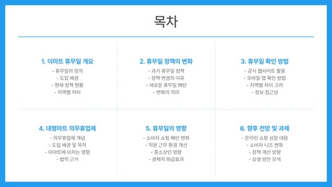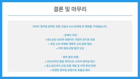 - 지자체와 상인회의 협의를 통해 지정된 날짜에 휴무